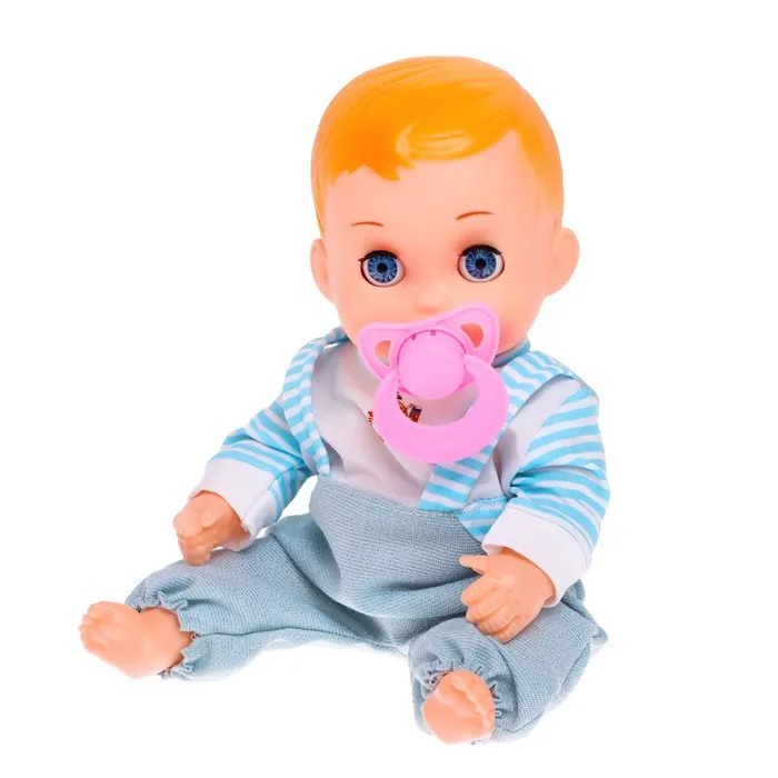 Пупсик музыкальный: если вынуть соску изо рта, говорит «мама», «папа», смеётся и плачет. Закрывает глазки, когда вы кладёте его в кровать.