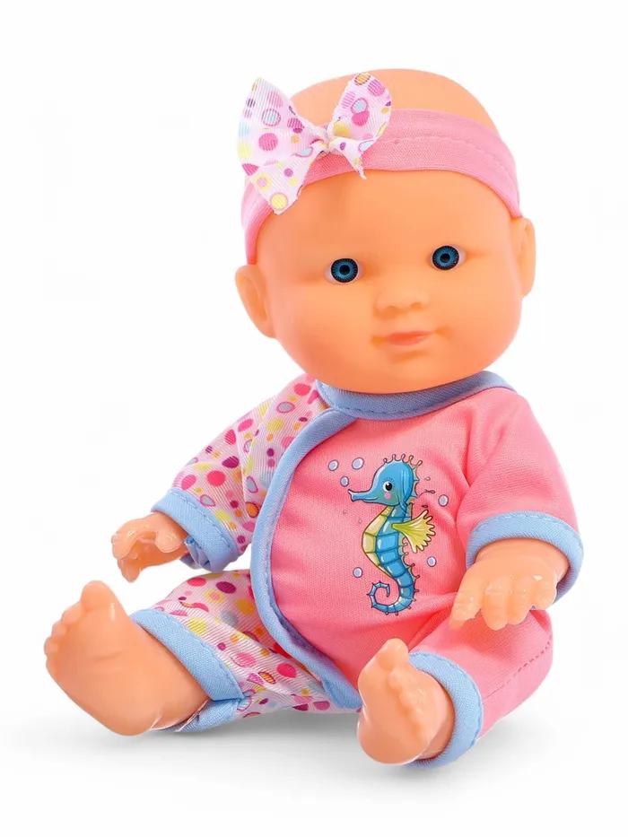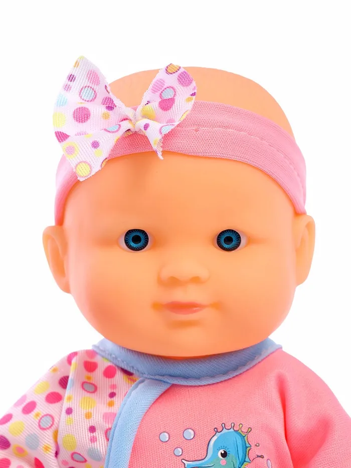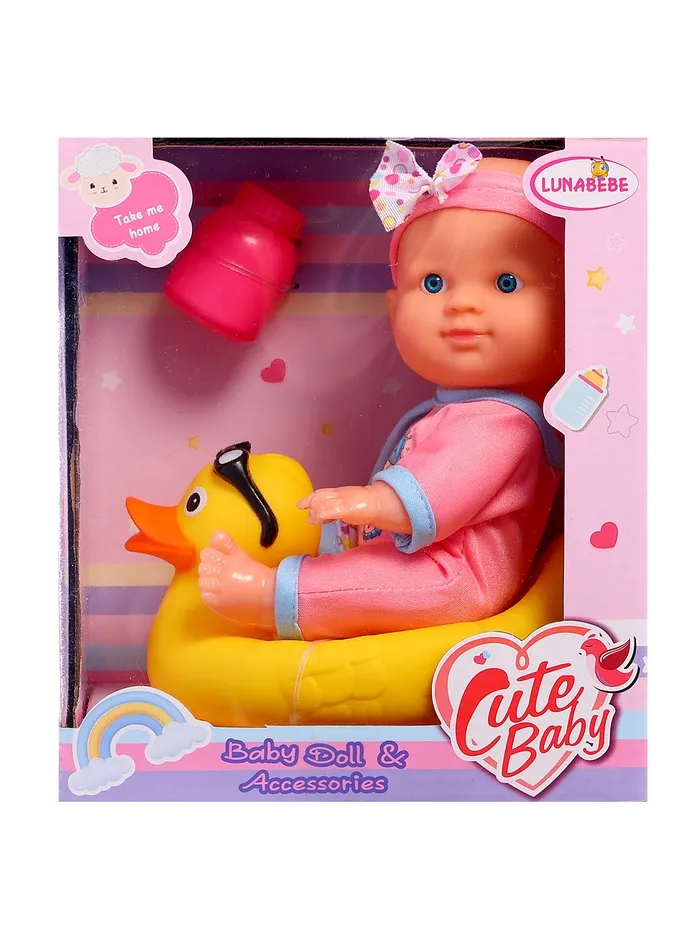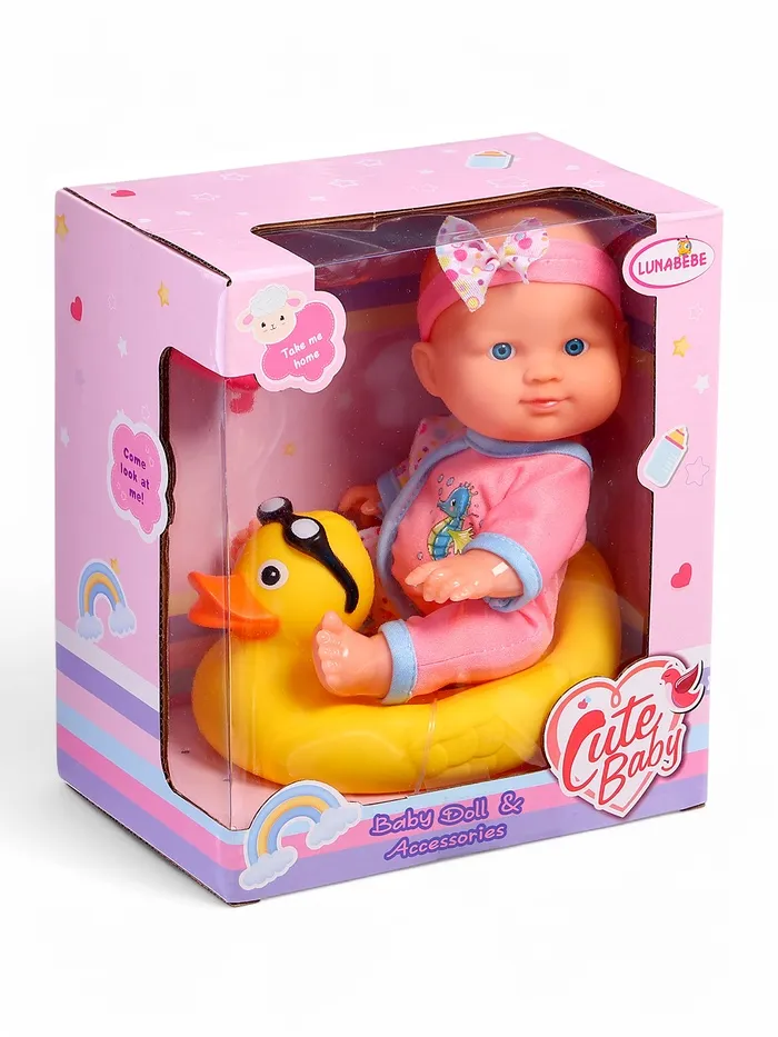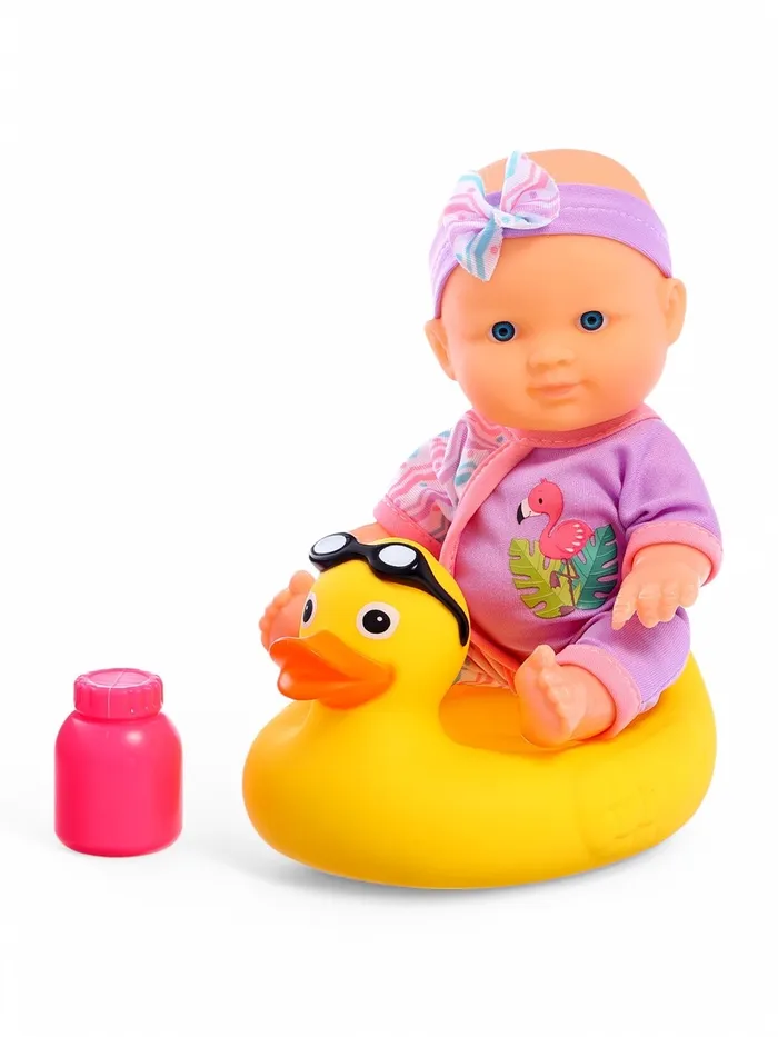 Пупс «Купание с уточкой» — это идеальный подарок для маленьких любителей водных забав. В комплекте идёт всё необходимое для весёлого купания: кукла, баночка и круг для купания в виде уточки. Одежда пупса легко снимается, что делает игру ещё более увлекательной и разнообразной.