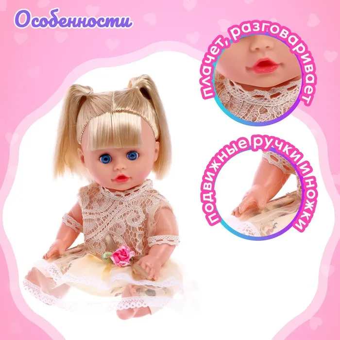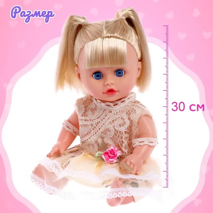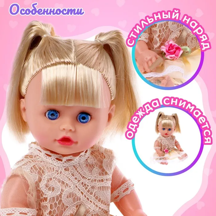 Куколка обязательно понравится ребёнку. Для работы игрушки нужны 3 батарейки типа LR44 (V13GA, AG13, LR1154), которые входят в комплект. Высота куклы: 30 см. Одежда снимается, «Машу» можно купать.