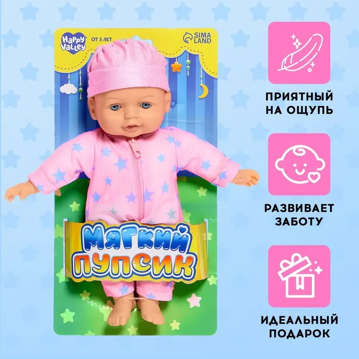 Мягконабивной пупс — необыкновенно приятная на ощупь и уютная игрушка. С ней малышка разовьёт тактильное восприятие и начнёт осваивать социальные роли.