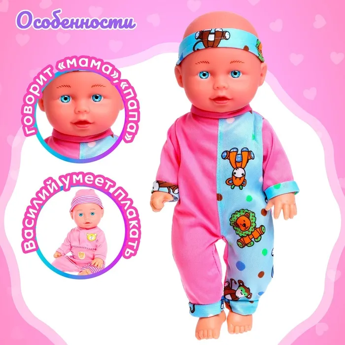 Пупс музыкальный «Василий» работает от батареек, МИКС — Характеристики