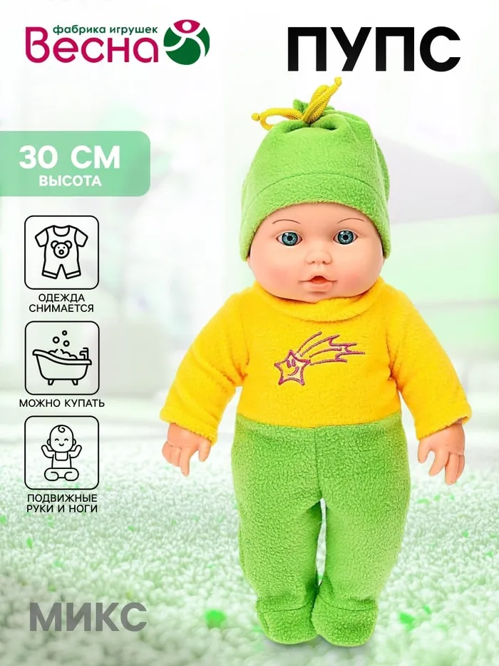 Хорошенький, в чудесной одёжке, такой игрушечный карапуз понравится любому ребёнку.
