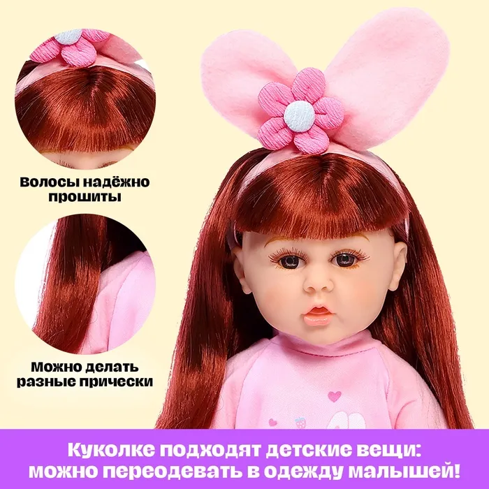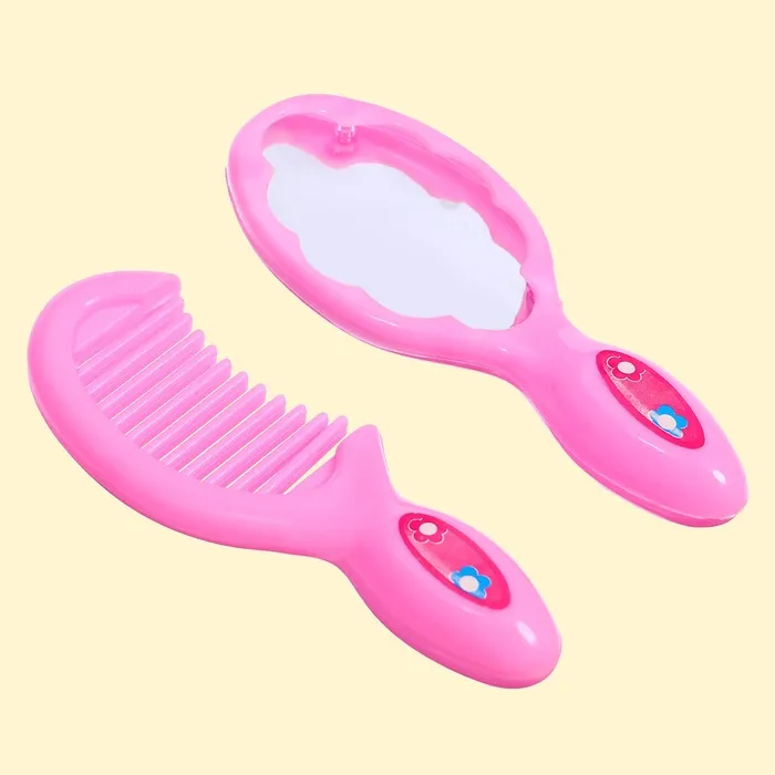 - В комплекте с куклой вы найдёте все необходимое для заботы о малыше: бутылочку для кормления, расчёску для волос и маленькое зеркальце.
