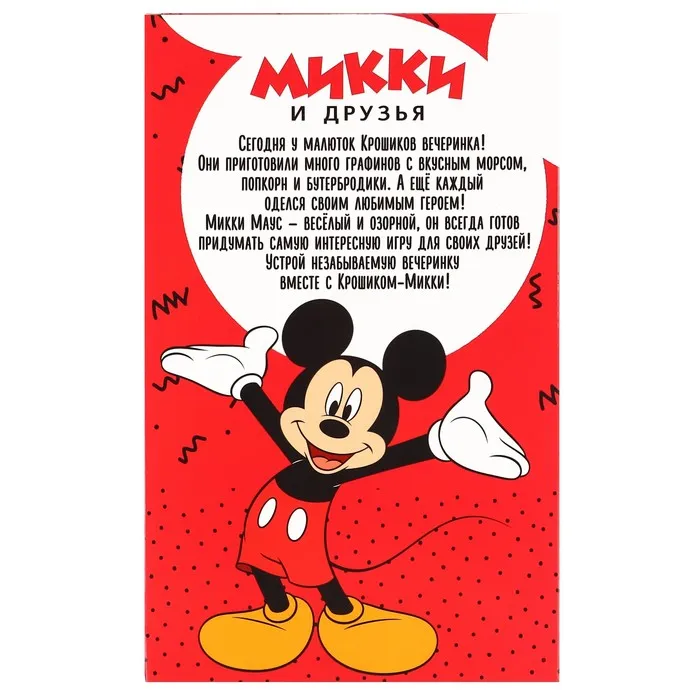 • Яркий наряд и шапочка Микки легко снимаются — можно придумывать новые образы или купать пупса. Костюм выполнен в узнаваемом стиле любимого героя.