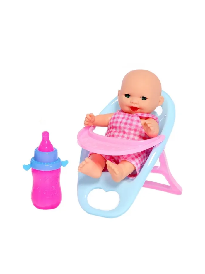 С милым пупсиком детские игры в дочки-матери станут веселей и увлекательней. Аксессуары разнообразят сюжеты: девочка будет заботиться о малыше. Посадит его на стульчик, покормит из бутылочки, искупает в ванной.
