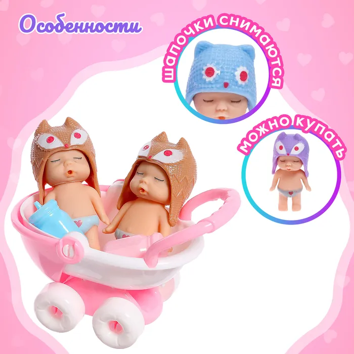 Пупсы «Малышки», набор 2 шт., с коляской, с аксессуарами, МИКС — Характеристики