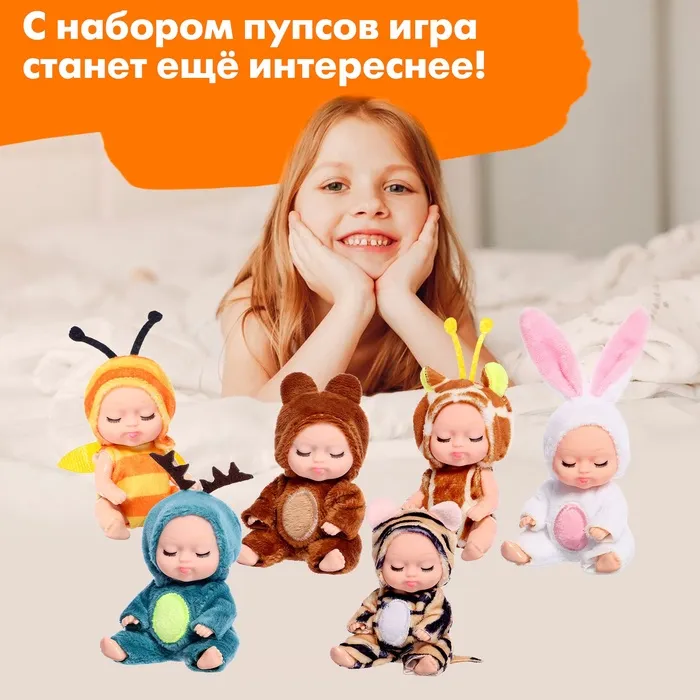 - Каждая куколка выполнена в виде спящего младенца в мягком костюме животного