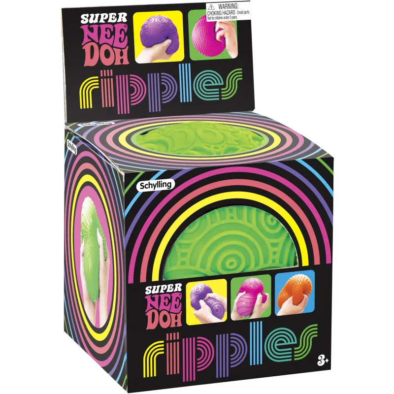 Мягкие и сжимаемые мячи NeeDoh с двумя различными текстурами поверхности. Доступны в четырех различных цветах.
