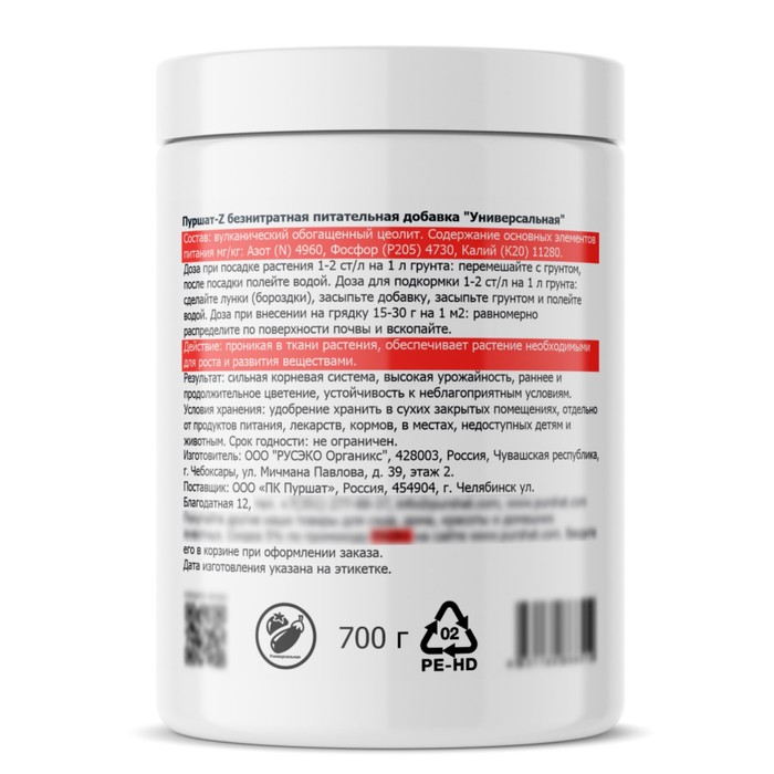 Пуршат-Z безнитратная питательная добавка «Универсальная», 700г — Характеристики