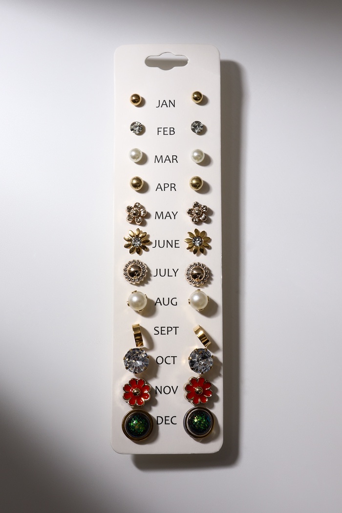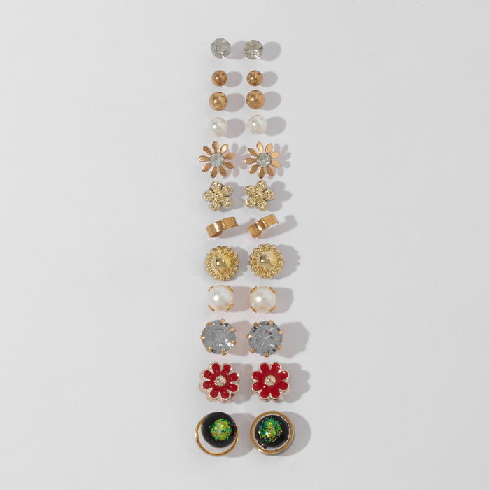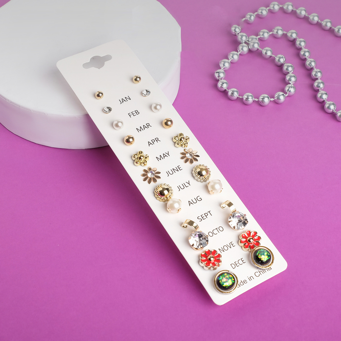 Пусеты 12 пар One year, летний день, цветные в золоте — Характеристики