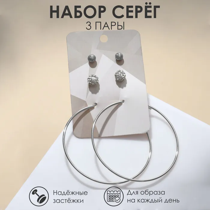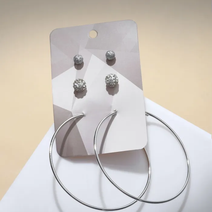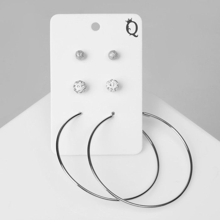 Пусеты 3 пары «Топ» кольца и бусины, цвет белый в серебре — Характеристики