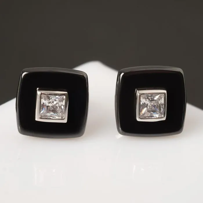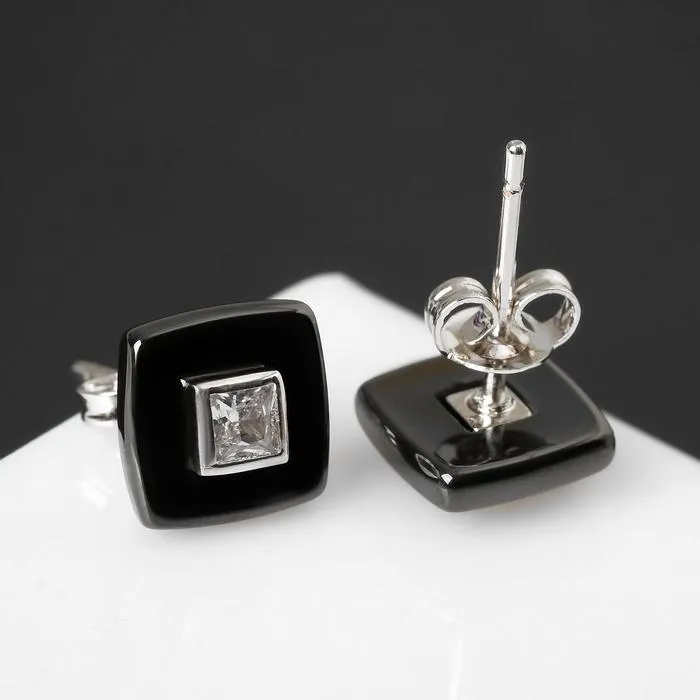 Пусеты керамика «Квадрат» малый, чёрно-белые в серебре — Характеристики