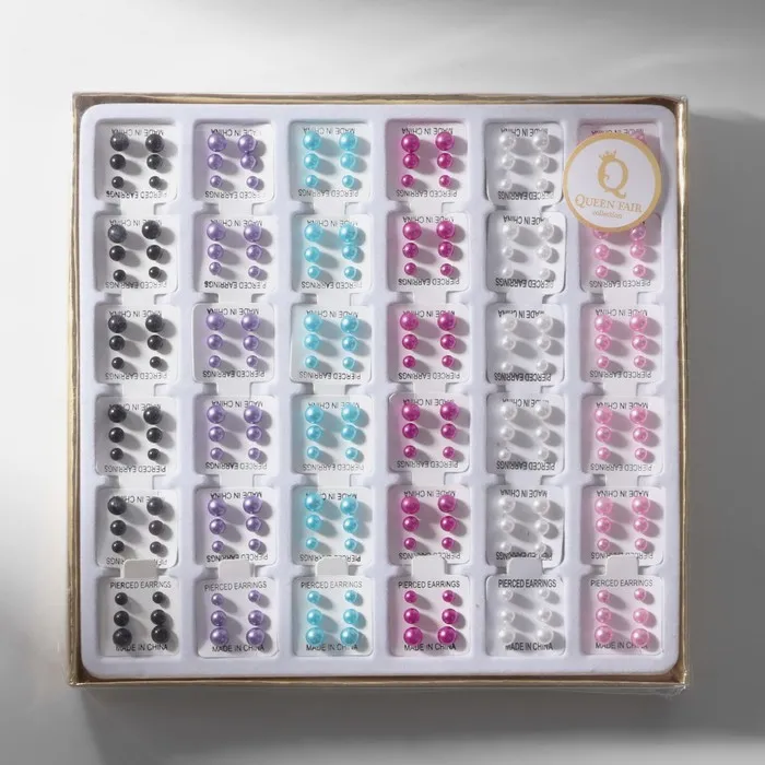 Пусеты в коробке 108 пар «Жемчужинки», 4, 5, 6 мм, цветные в серебре — Характеристики