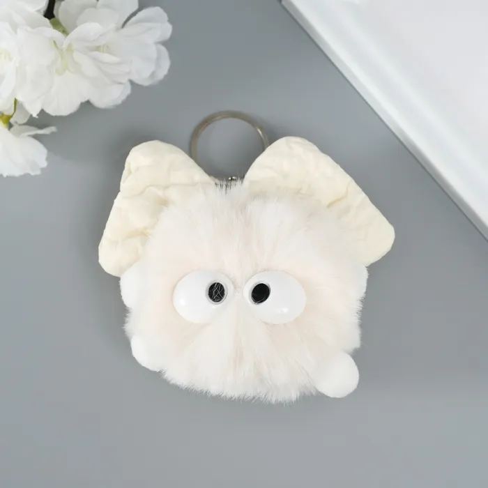 Пушистик на кольце "Мася с большим бантом" белый 12х8х8 см