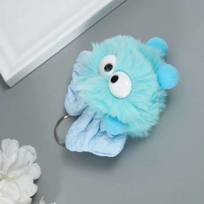 Пушистик на кольце "Мася с большим бантом" голубой 12х8х8 см — Характеристики