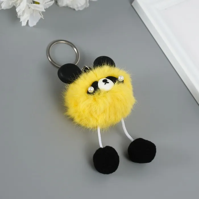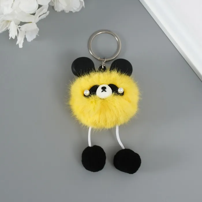 Пушистик на кольце "Панда модник" жёлтый 9х6х6 см — Характеристики
