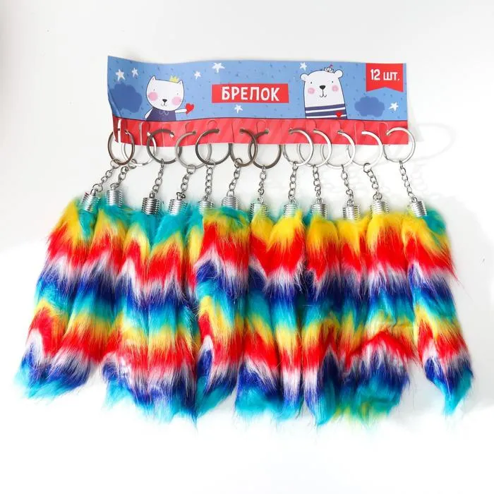 Пушистик на кольце "Полосатый яркий хвостик" 17х6,5х6,5 см МИКС — Характеристики