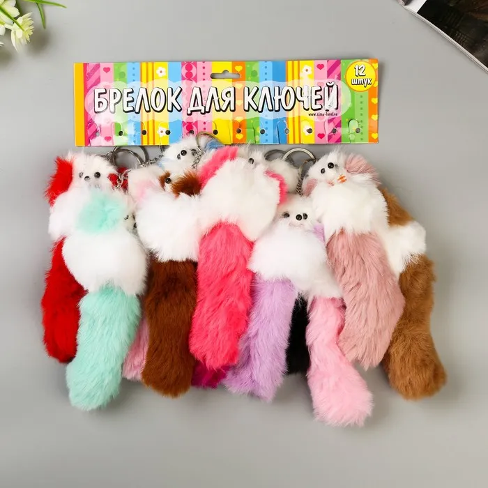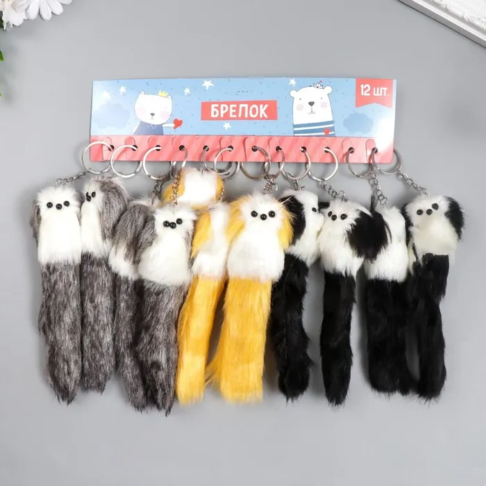 Пушистик на кольце "Пудель с цветными ушками и хвостом и бантиком" МИКС 18,5х6х5 см — Характеристики