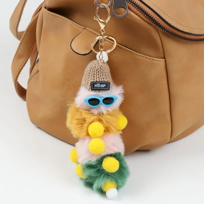 Пушистик на кольце с карабином "Яркая гусеница в очках и шапке" 15 см, МИКС — Характеристики