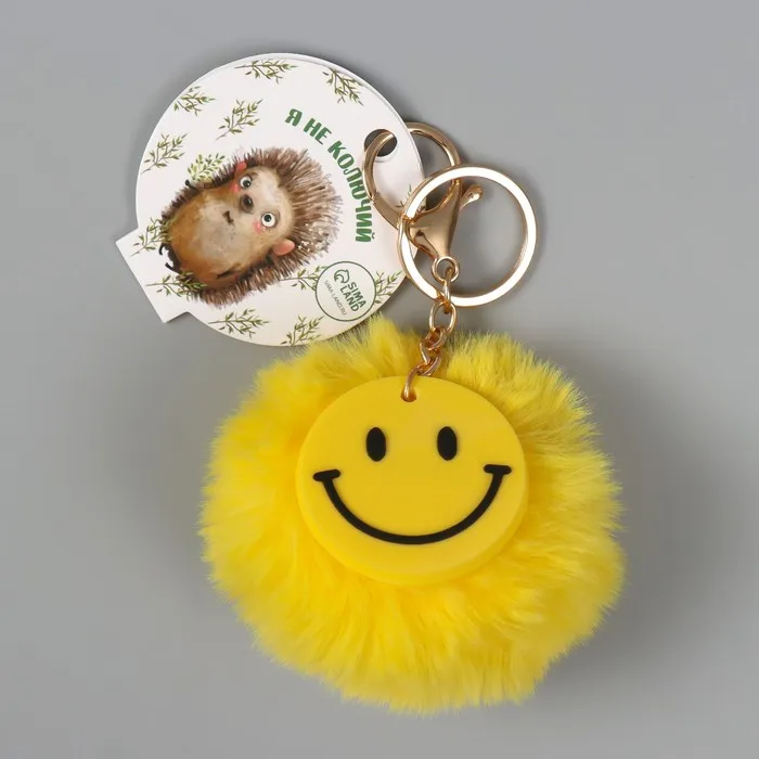 Пушистик на кольце с карабином "Смайл" жёлтый 8х8 см — Характеристики