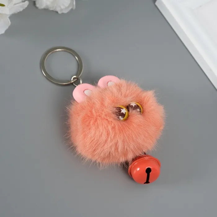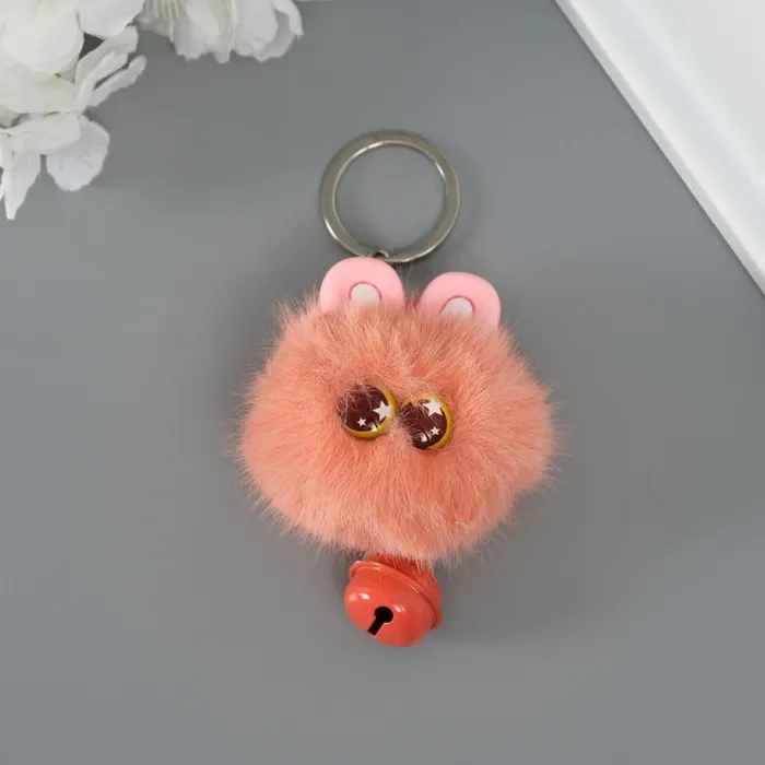 Пушистик на кольце "Звёздные глазки с бубенчиком" персиковый 8,5х6х6 см — Характеристики