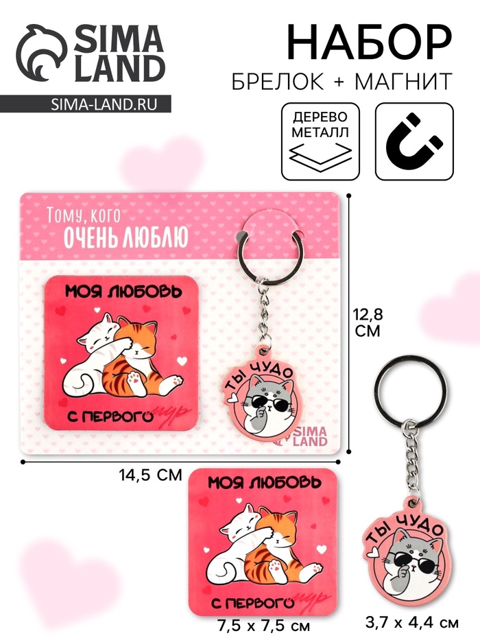 Брелок для ключей и магнит «Любовь с первого мур», 14.5×12 см