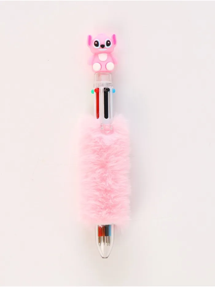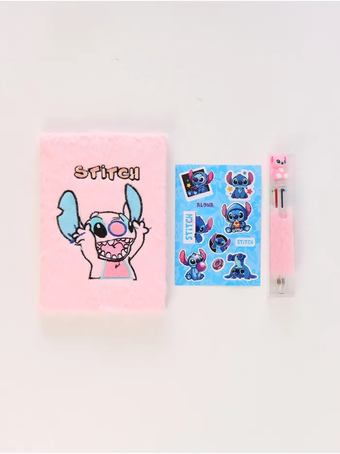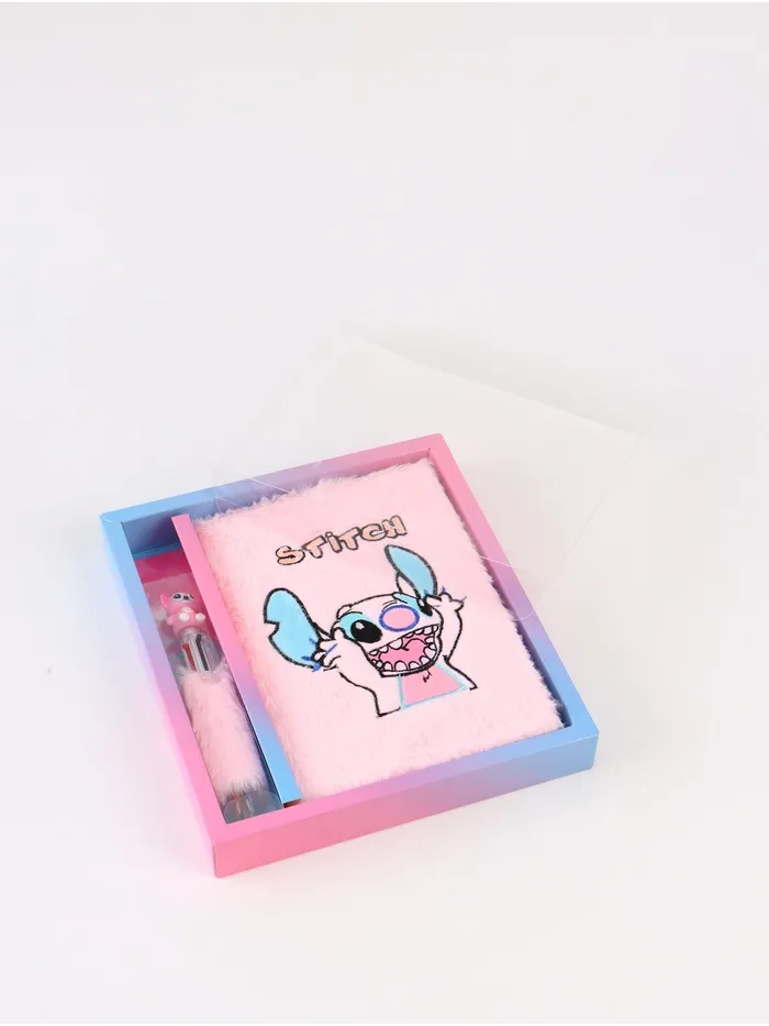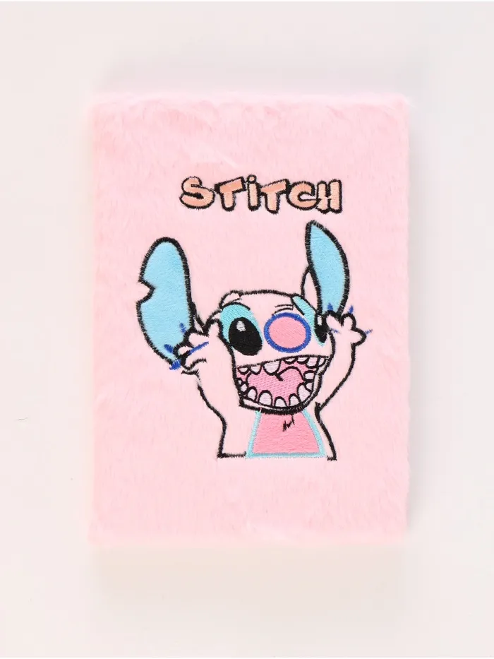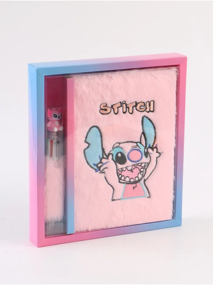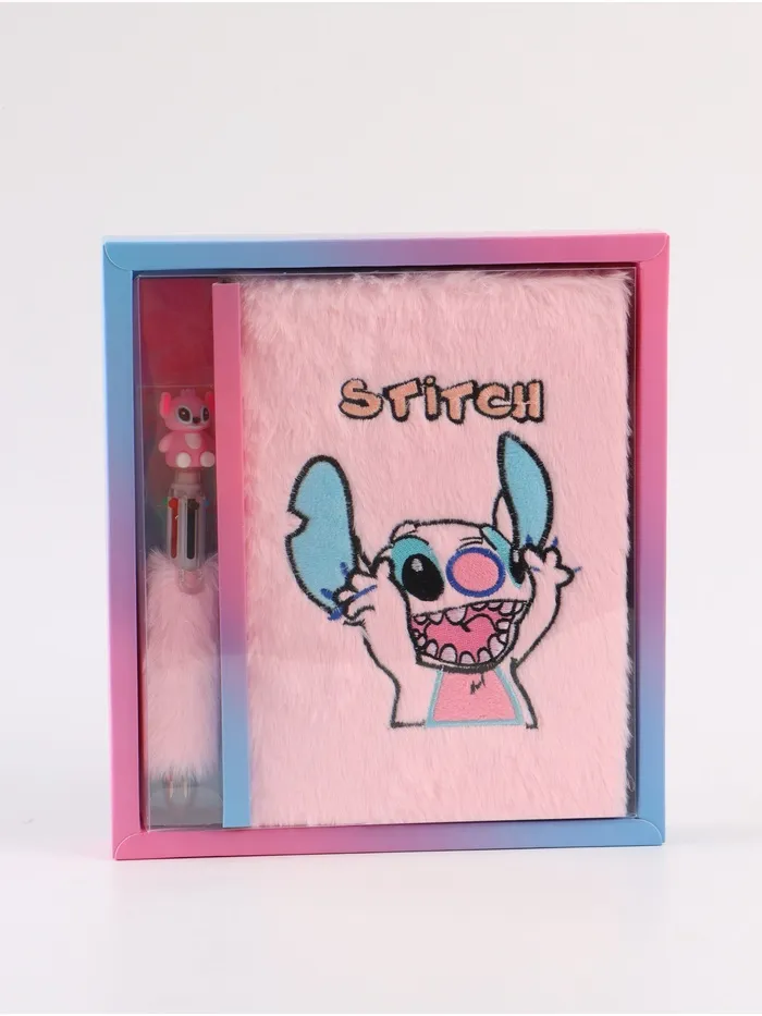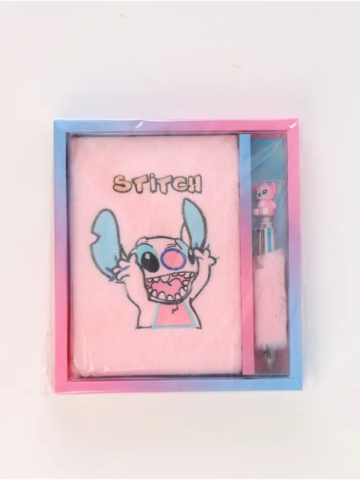 Пушистый блокнот и ручка многоцветная Стич, розовый