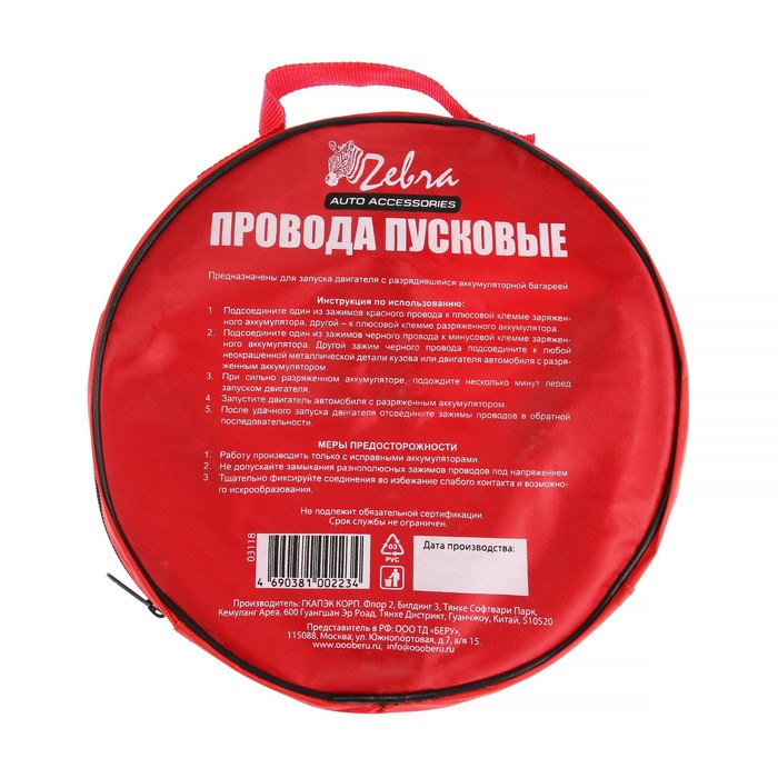 Пусковые провода Zebra, 500 А, в сумке, 2.2 м — Характеристики