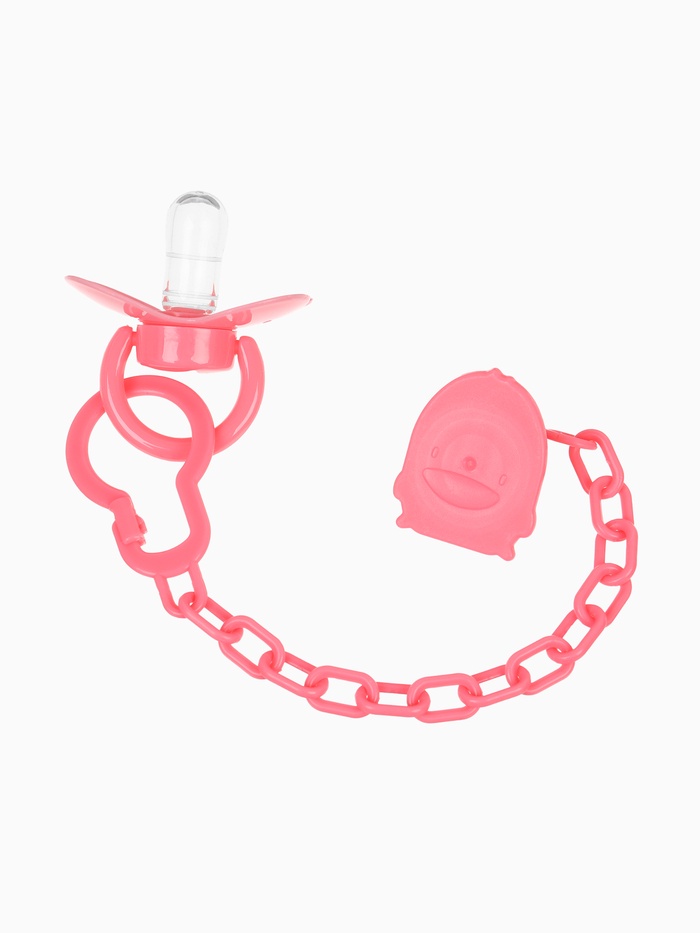Пустышка классическая, с держателем, +0 мес., розовая — Характеристики