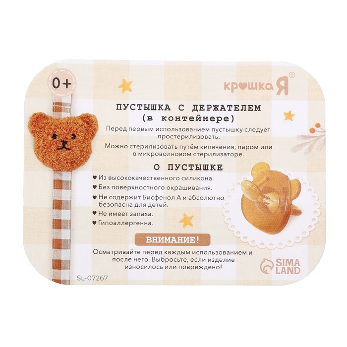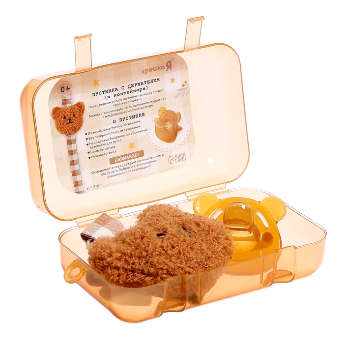 Пустышка с держателем «Мишка», набор в контейнере, коричневый — Характеристики