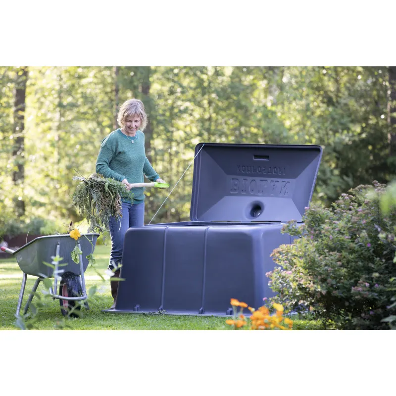 Садовый компостер Biolan предназначен специально для компостирования садовых отходов, но также подходит для последующего компостирования мульчи, включая отходы, образующиеся в компостной уборной. Компостер прочный и устойчив к погодным изменениям и морозу. Крышка оснащена регулируемым вентиляционным отверстием.