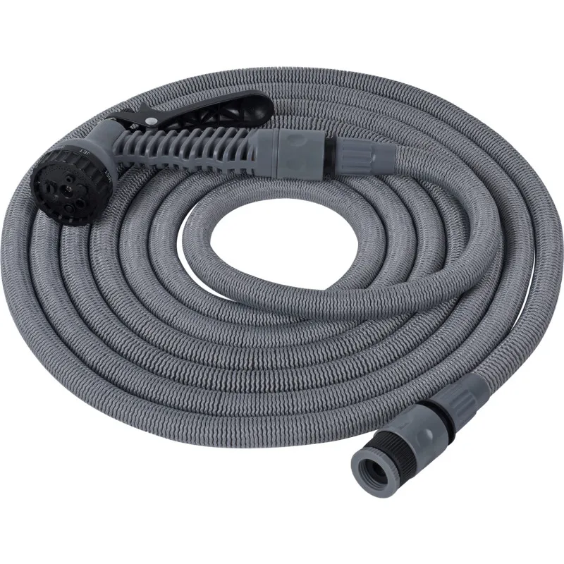 Этот экономичный шланг с полиэфирным плетением расширяется, когда кран открыт и в шланге есть давление, и сжимается обратно, когда кран закрыт. Длина составляет от 3,3 до 10 метров.
