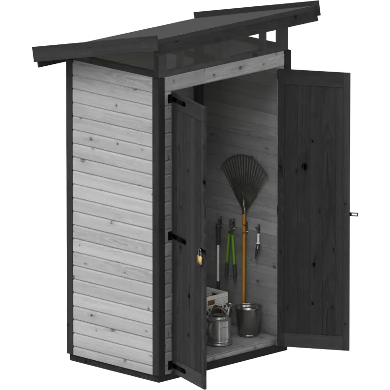 Этот садовый сарай – отличное решение для хранения ваших инструментов и садового оборудования. Он предлагает достаточное пространство для всех ваших нужд, а его стильный дизайн прекрасно вписывается в окружающую среду. Долговечные материалы, из которых он изготовлен, обеспечивают надежную защиту от погодных условий.
