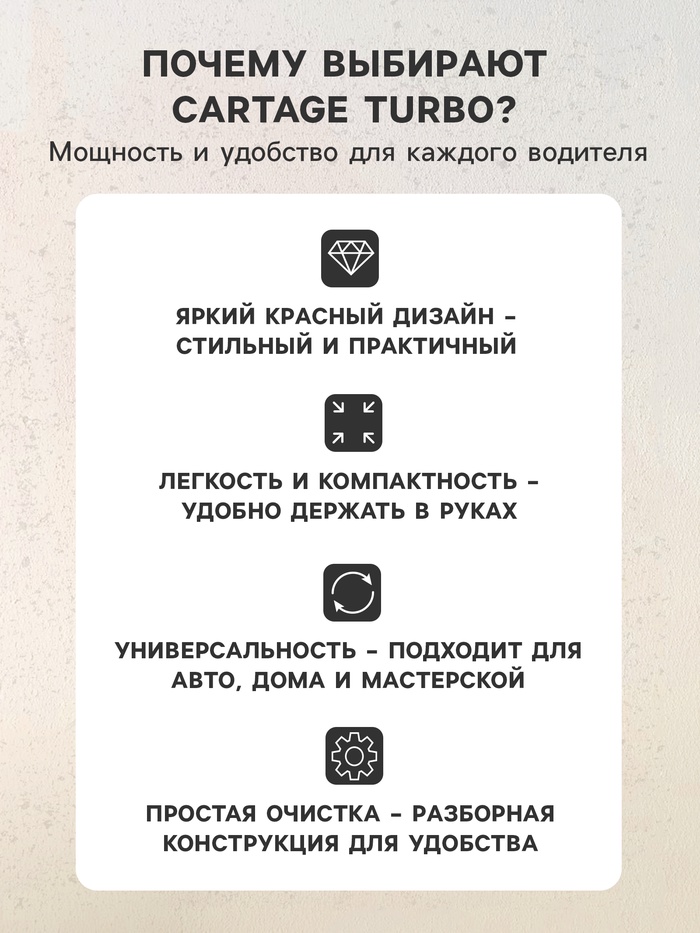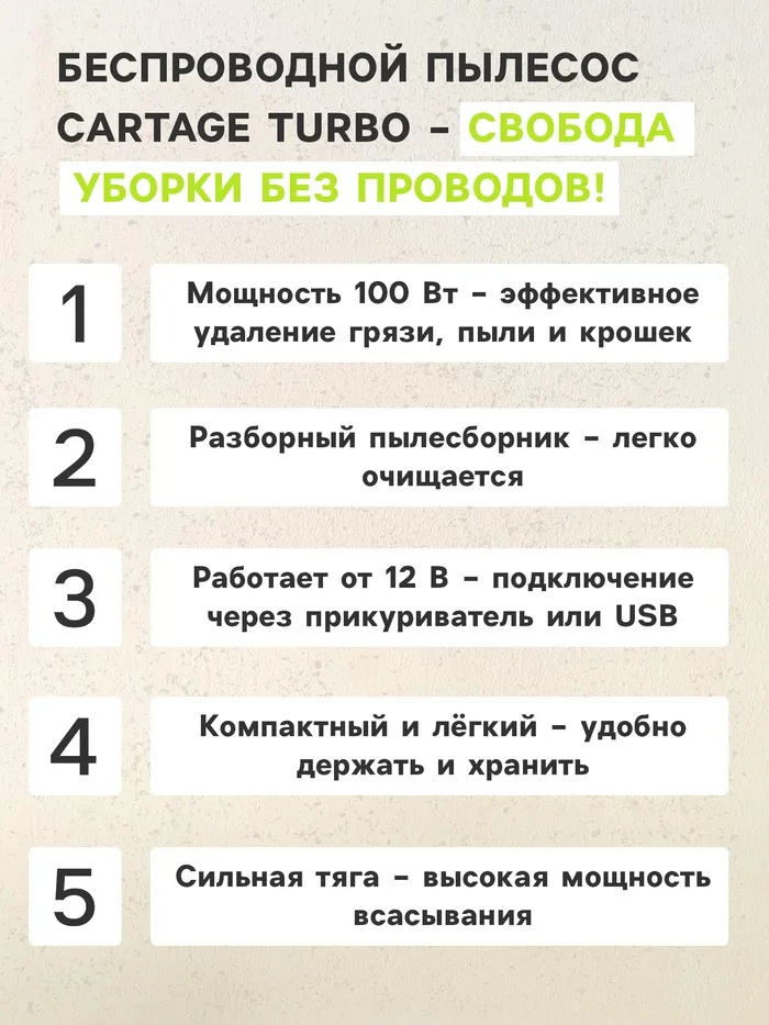 Один из самых компактных пылесосов для авто, что не мешает ему обладать серьёзной мощностью. Разумеется, устройство со 100-ваттным мотором не сравнится с домашними «монстрами», работающими от сети 220 В, но в своём классе показывает отличные результаты. Дизайн строг и одновременно симпатичен. Корпус выполнен из прочного прозрачного пластика. Работает по технологии «Циклон». Объём пылесборника – 0.3 л. В системе очистки воздуха предусмотрен HEPA фильтр, задерживающий микрочастицы до 0.3 мк. Данный аксессуар заметно упрощает очистку обивки сидений от пыли и мусора, а если в качестве пассажиров периодически выступают домашние животные, поможет устранить следы их пребывания в салоне.
