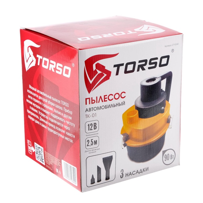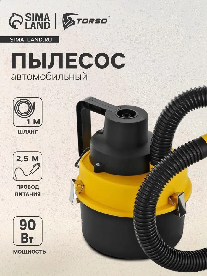 Пылесос автомобильный, TORSO, 90 Вт, 12 В