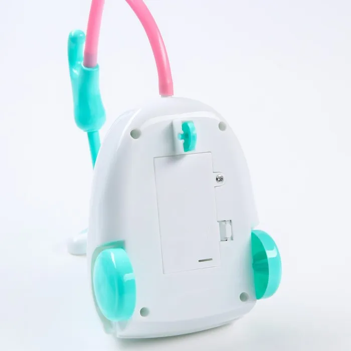 - При нажатии на кнопку пылесос загорается и воспроизводит характерные звуки работы. Это стимулирует слуховое и зрительное восприятие, а также создаёт имитацию реальной техники.