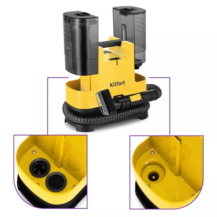 Пылесос Kitfort КТ-5162-3, моющий, 400 Вт, 1.3/0.5 л, чёрно-жёлтый — Характеристики