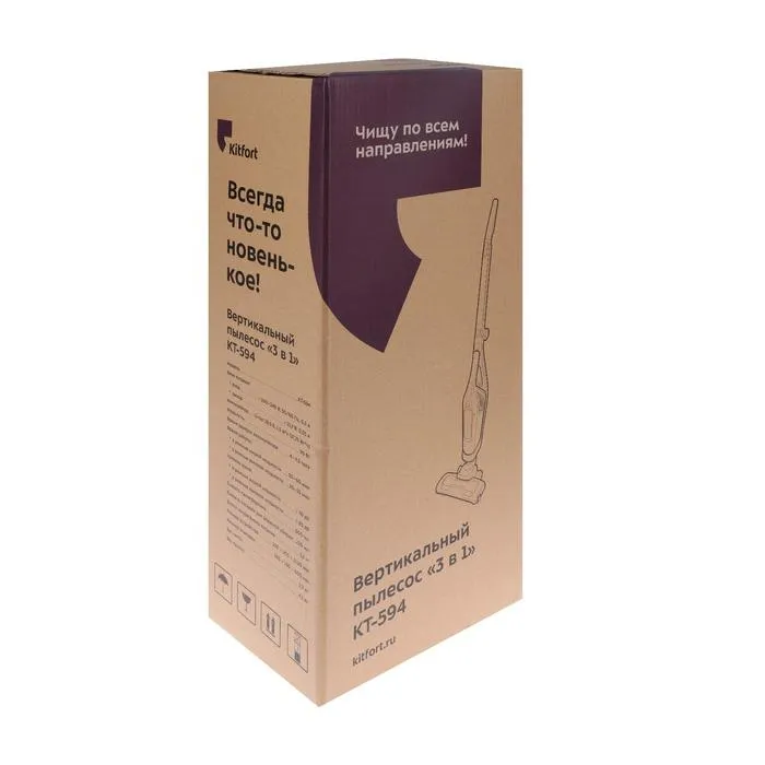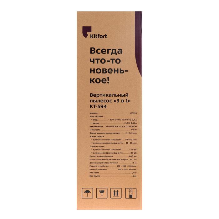 Пылесос Kitfort КТ-594, вертикальный, 90 Вт, 600 мл, серый — Характеристики