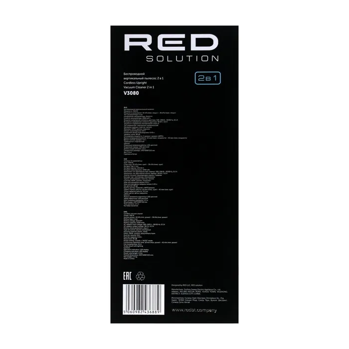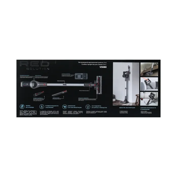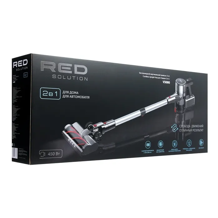 Пылесос RED SOLUTION V3080, вертикальный, беспроводной, 450 Вт/36 кПа, 0.9 л, серый — Характеристики
