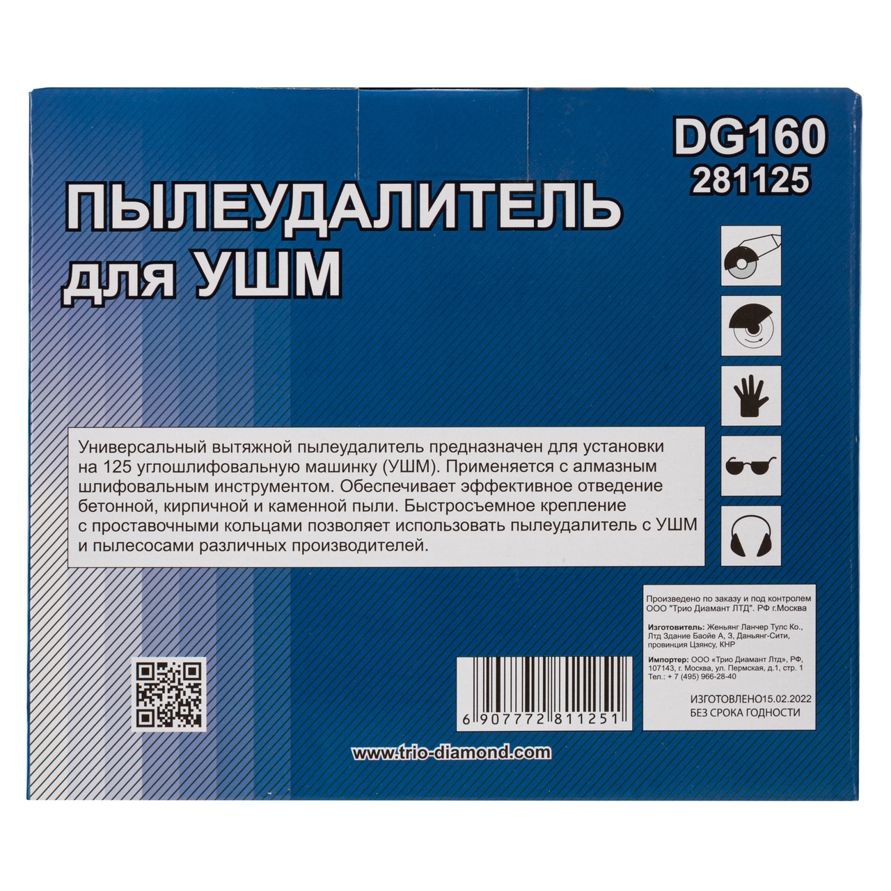 Используйте пылеудалитель DG160 от TRIO-DIAMOND для чистоты и безопасности при шлифовальных работах. Это незаменимый инструмент для мастеров, работающих с угловыми шлифмашинами в цехах и на стройплощадках. Позволяет эффективно устранять пыль, создавая комфортные условия труда.