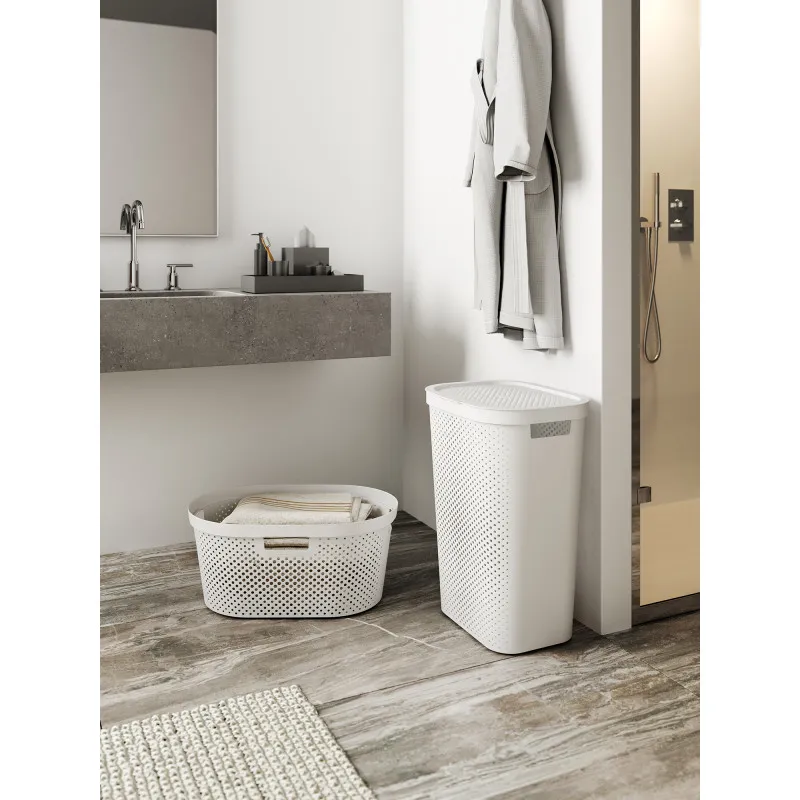 Стильная корзина для белья с крышкой. Вентиляционные отверстия предотвращают накопление влаги на одежде. Объем 60 литров. Изготовлена из полипропилена. Цвет: белый.