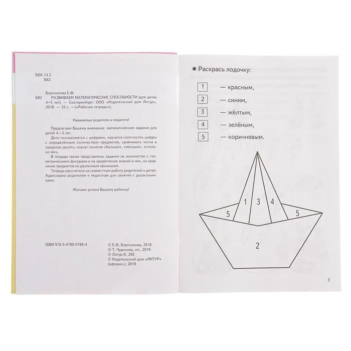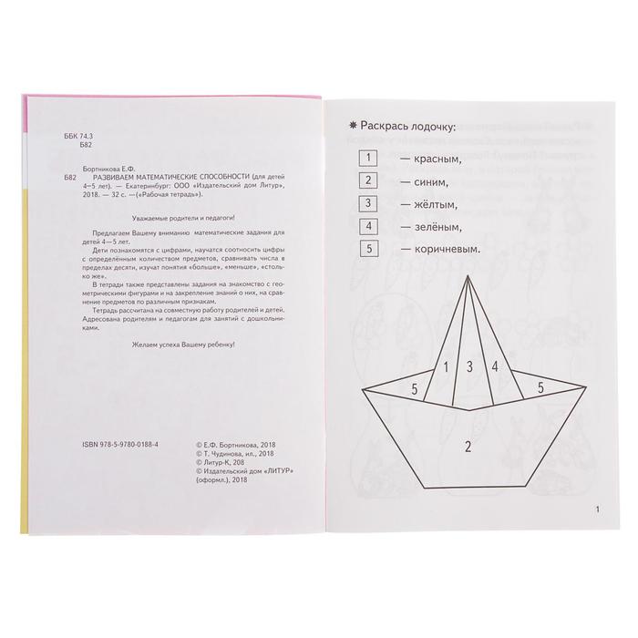Рабочая тетрадь для детей 4-5 лет «Развиваем математические способности», Бортникова Е. — Характеристики