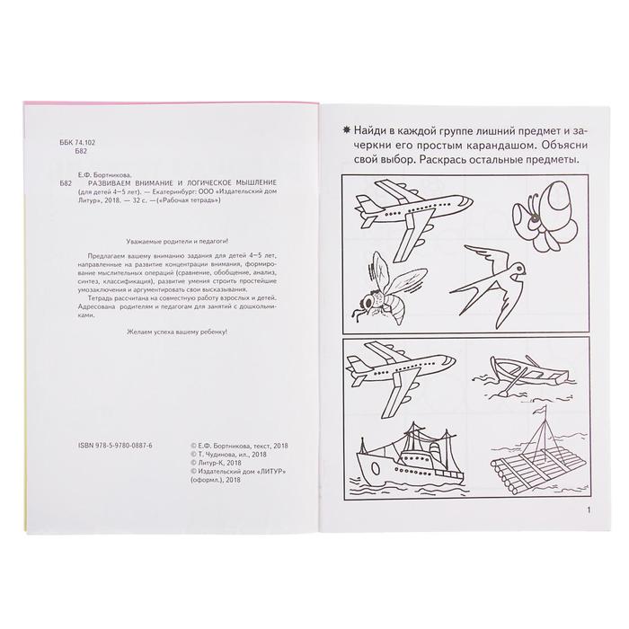 Рабочая тетрадь для детей 4-5 лет «Развиваем внимание и логическое мышление», Бортникова Е. — Характеристики
