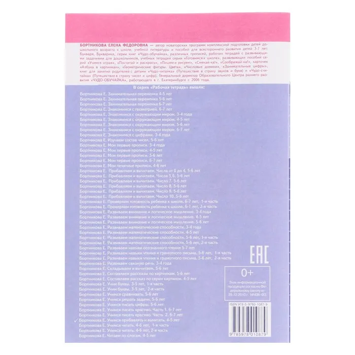 Рабочая тетрадь для детей 4-5 лет «Учимся прибавлять и вычитать», Бортникова Е. — Характеристики
