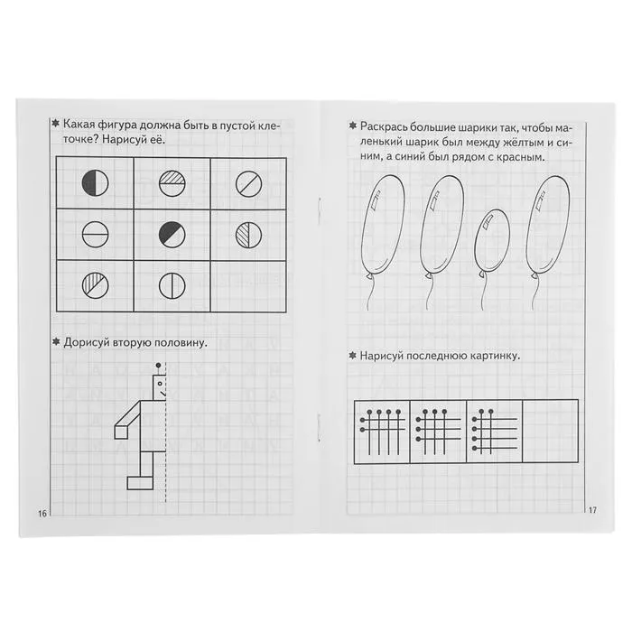 Тетрадь рассчитана на детей 5-6 лет и пригодится родителям, воспитателям и педагогам. Она подготовит ребёнка к школьной нагрузке, помогая ему научиться концентрироваться и рассуждать.