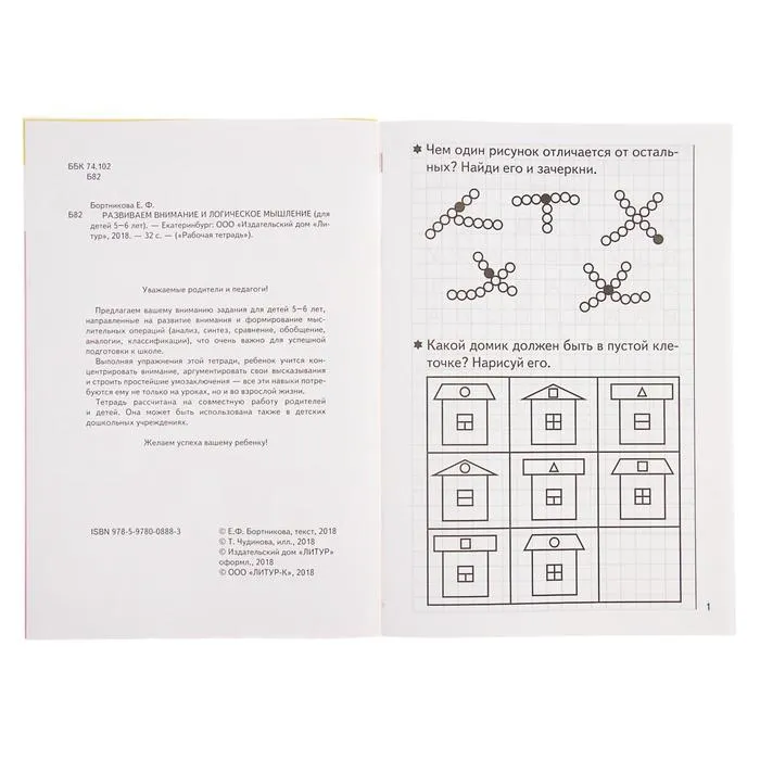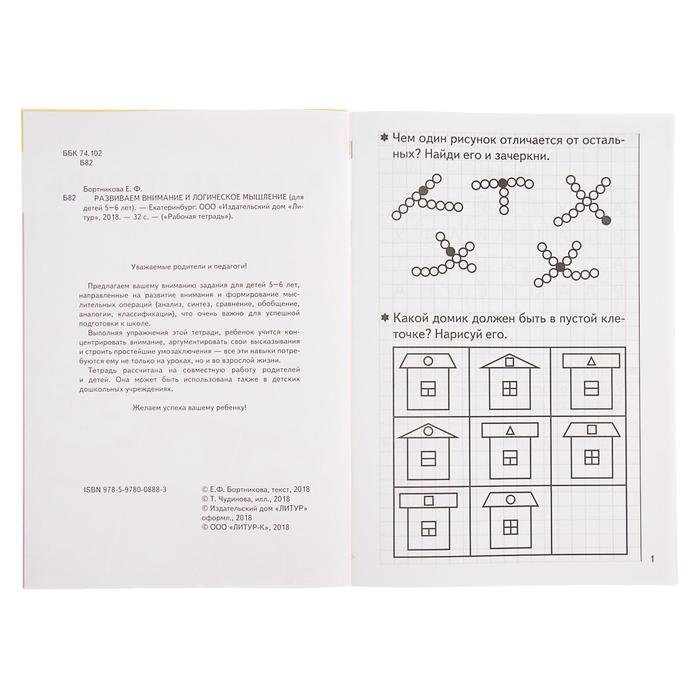 Рабочая тетрадь для детей 5-6 лет «Развиваем внимание и логическое мышление», Бортникова Е. — Характеристики