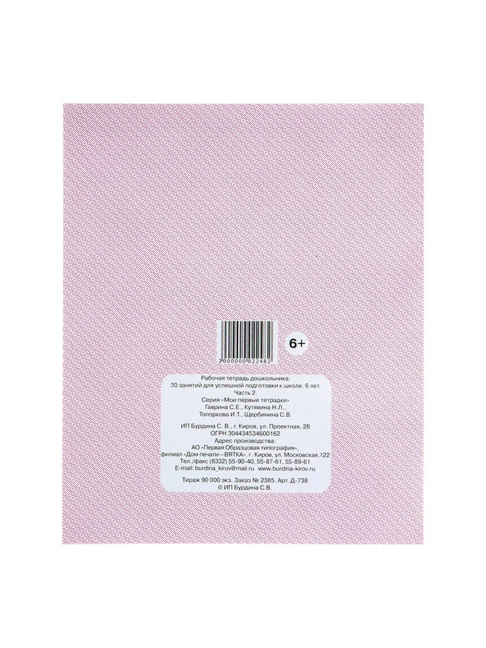 Рабочая тетрадь для подготовки к школе станет надёжным помощником для детей 6 лет, которые готовятся к важному этапу в своей жизни — началу обучения. Вторая часть пособия содержит 15 занятий, каждое из которых включает 6 заданий. Эти упражнения помогают ребёнку освоить базовые навыки математики, русского языка и окружающего мира, а также развивают внимание, логику и мелкую моторику.