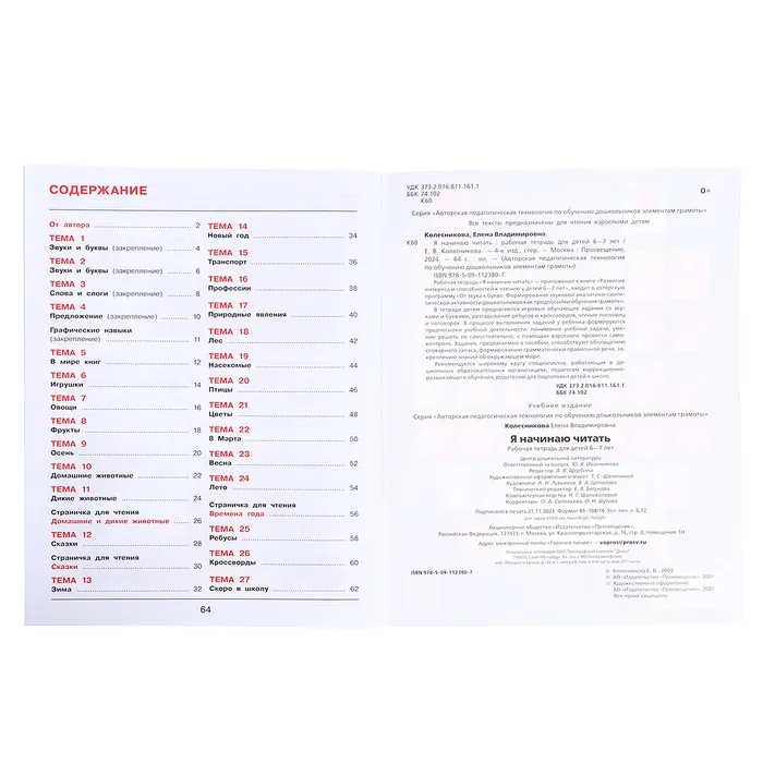 Рабочая тетрадь «Я начинаю читать», для детей 6-7 лет, Колесникова Е.В., 2023 — Характеристики