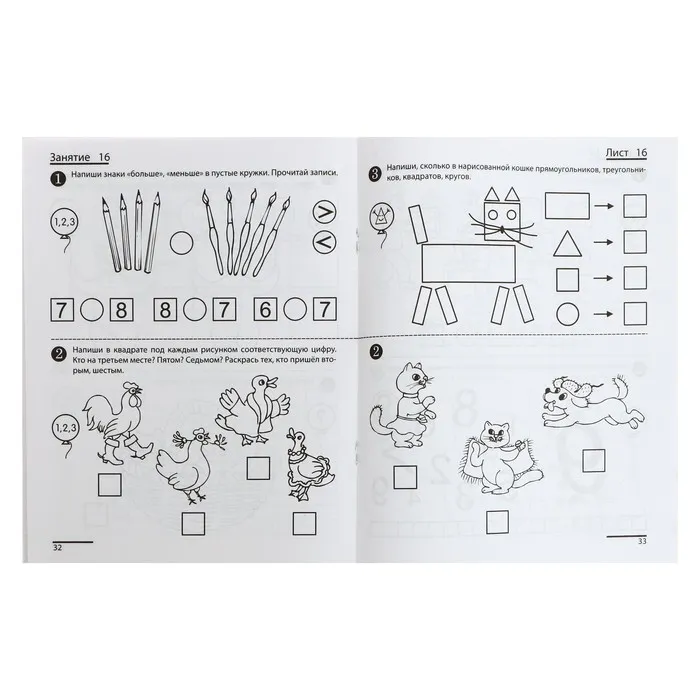 Тетрадь входит в программу «Математические ступеньки» и соответствует требованиям ФГОС ДО. Последовательное выполнение заданий поможет подготовиться к следующему уровню – изучению чисел до 20.
