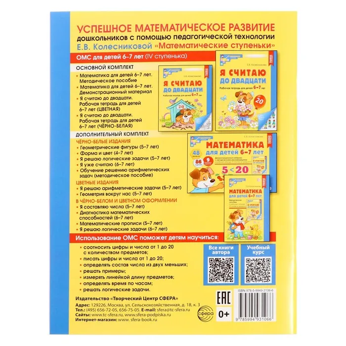 Рабочая тетрадь «Я считаю до двадцати», для детей 6-7 лет, цветная. Колесникова Е.В. — Характеристики